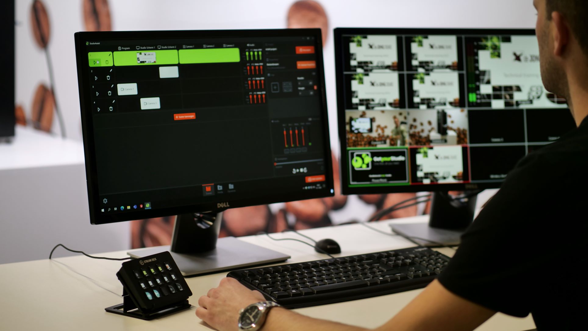 GetyourStudio is controlled by StudioAssist, our smart video production software. With StudioAssist, you can live stream and/or record webinars, online training courses, and presentations. In addition, other content such as interviews and knowledge events can be made quickly and easily. The GetyourStudio StudioAssist software was created with the idea of doing video productions or live streams with one or more cameras yourself, without the need of external AV specialists, directors, cameramen, or colleagues. You can also classically operate your studio from the director's chair.