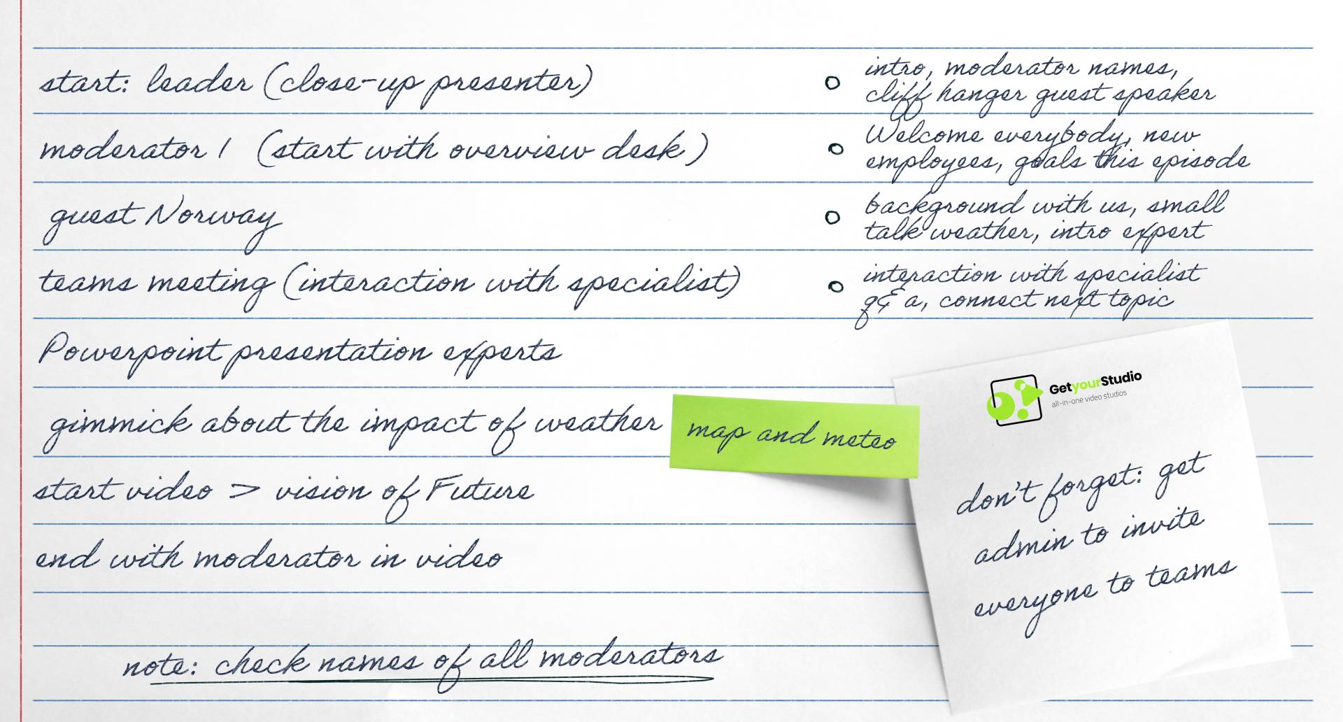 StudioAssist supports a wide range of professional multi-camera productions: webinars, corporate presentations, online training, e-learning modules, talk shows, interviews, (video) podcasts, and hybrid events. Live, recorded, or both simultaneously. Thanks to the scripting function, recurring formats — such as weekly webinars or monthly all-hands meetings — are ready to use without any additional preparation.